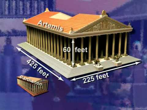 - .El Templo de Artemisa en Éfeso (actual Turquía). También conocido como Artemision, fue construido hacia 550 a. C. y destruido por un incendio intencionado en 356 a. C., provocado por un griego llamado Eróstrato. Alejandro Magno ordenó su reconstrucción, culminada tras su muerte en el año 323 a. C. Este nuevo templo, que debe ser considerado como el incluido dentro de la lista de las maravillas, fue destruido a su vez por los godos durante un saqueo en el año 262.